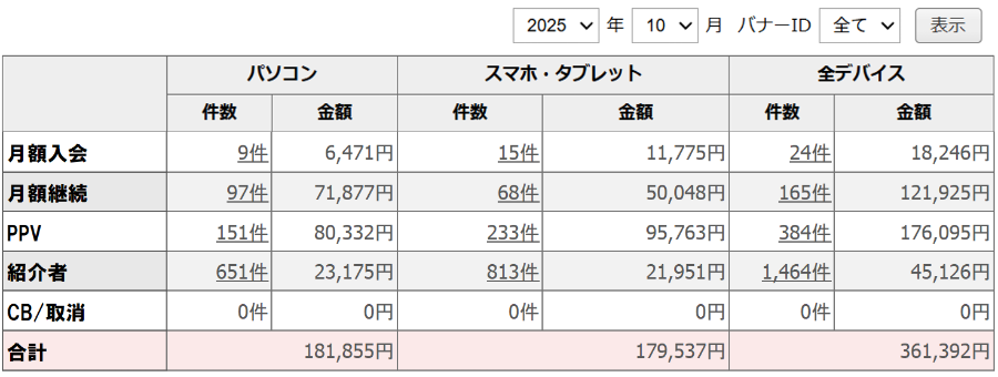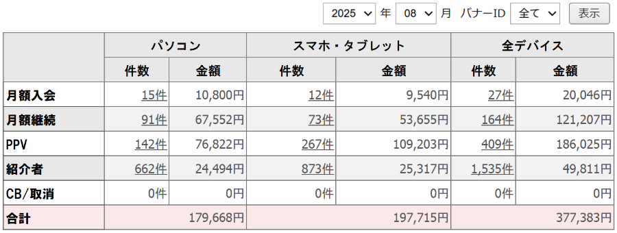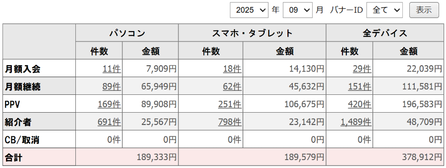 アフィリエイト商品には「単発」と「継続」の2種類があり、アダルトアフィリエイトの継続商品の継続率は抜群に高い傾向があります。